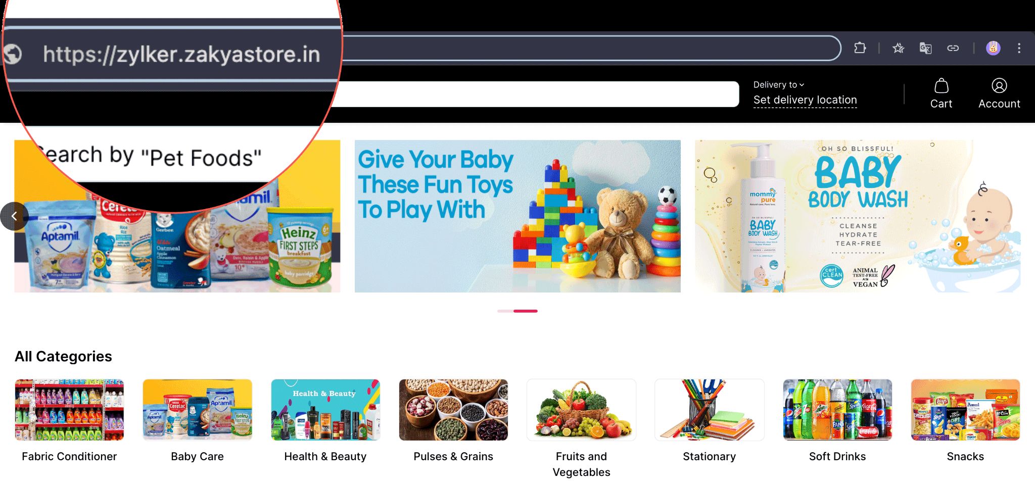 Store URL without custom domain mapping: https://zylker.zakyastore.com