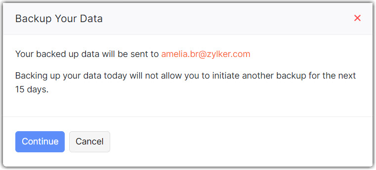 You must be an admin user in the Zoho POS organization to create a data backup.