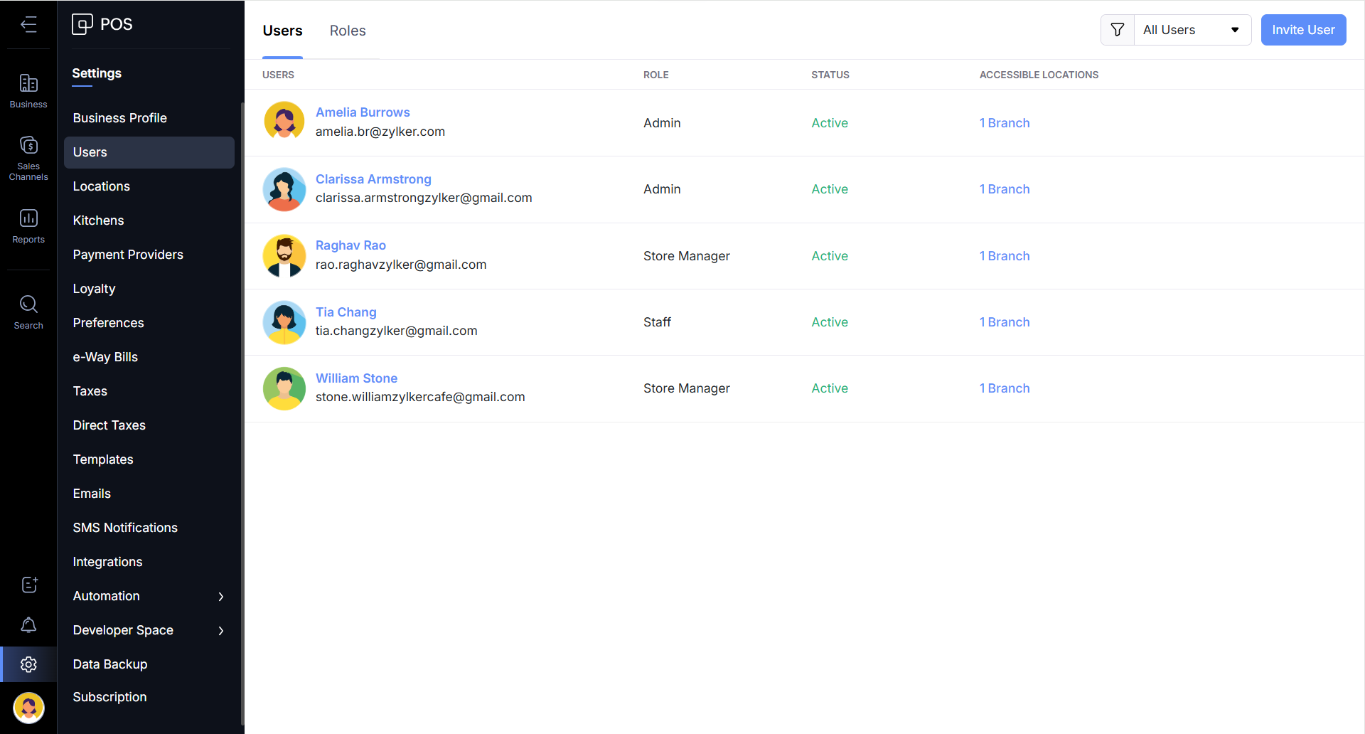 Zoho POS lets you restrict your organization user’s access to the sensitive data of your contacts. You can choose to edit a user’s role and enable or disable their access to Personally Identifiable Information (PII). Any data that can be used to identify a specific individual. To do this: