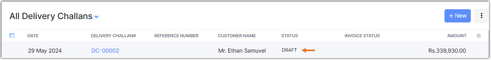 Stage 1: Once the delivery challan is created, it will be moved to draft status, which means the goods are yet to be dispatched.