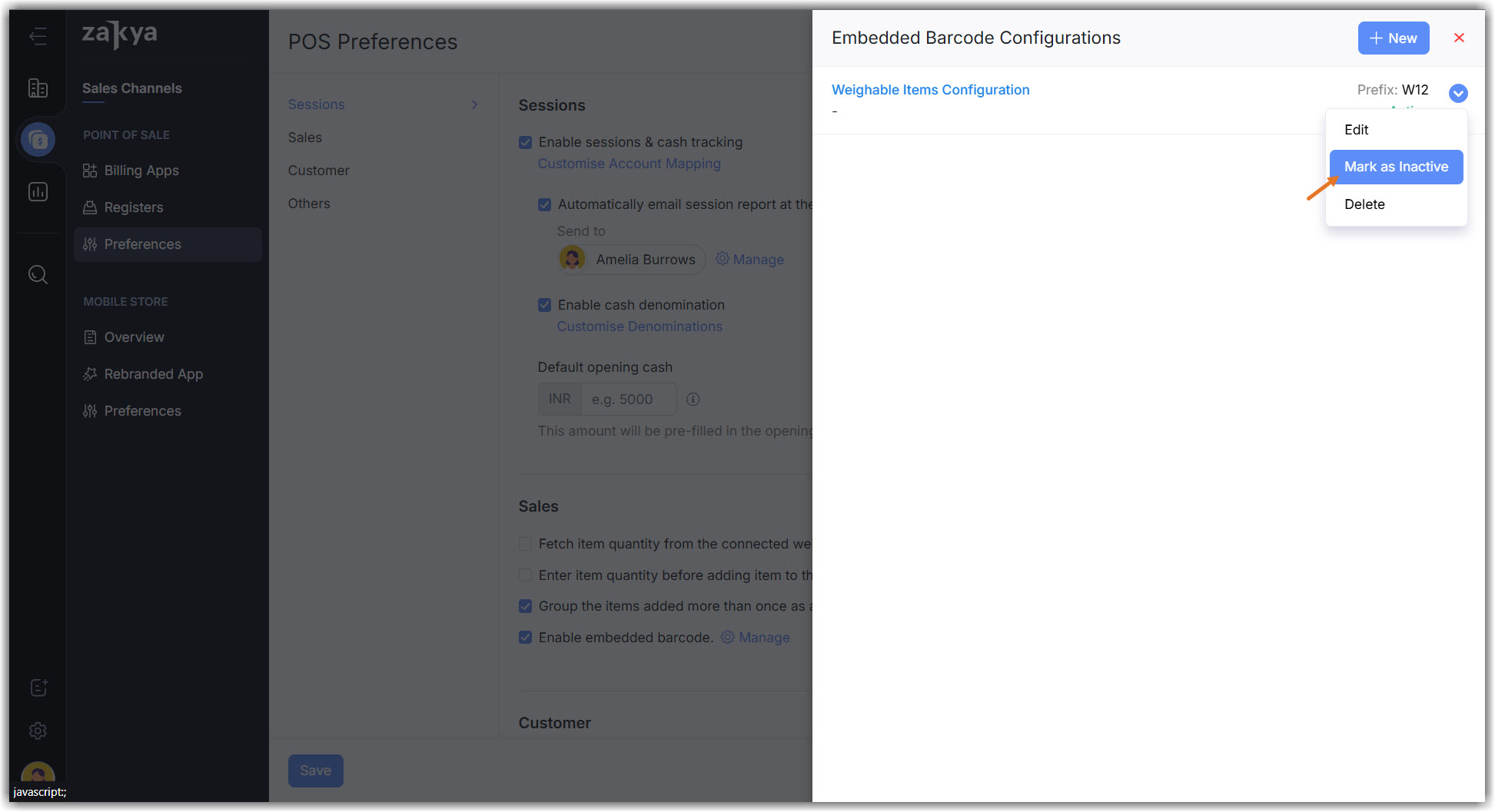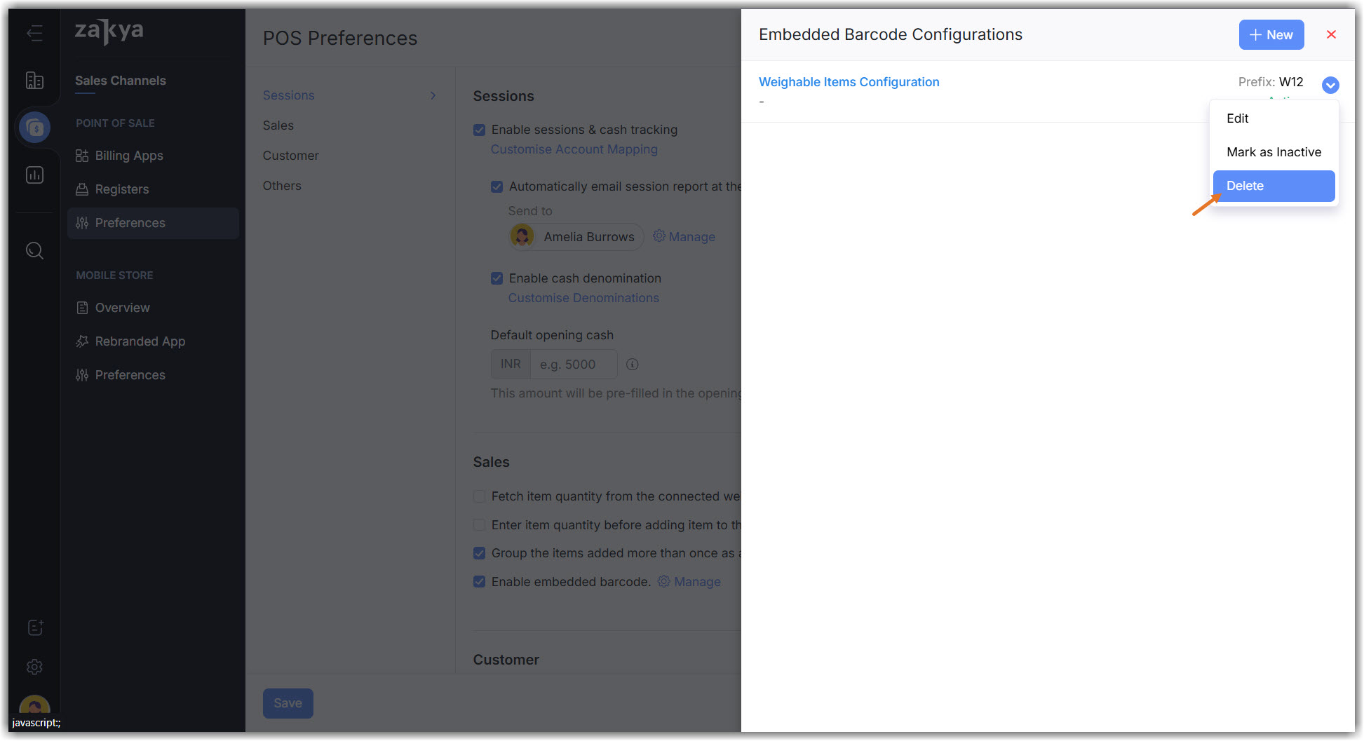 If you want Zoho POS to stop reading embedded barcodes permanently, remove the configuration associated with those barcodes.