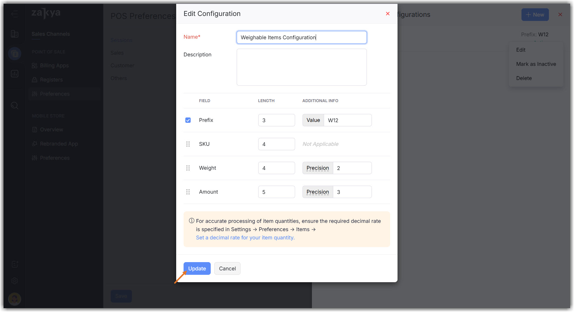 Zoho POS can read embedded barcodes using the existing configurations. If any modifications are made to the barcodes, the configuration should be updated accordingly.