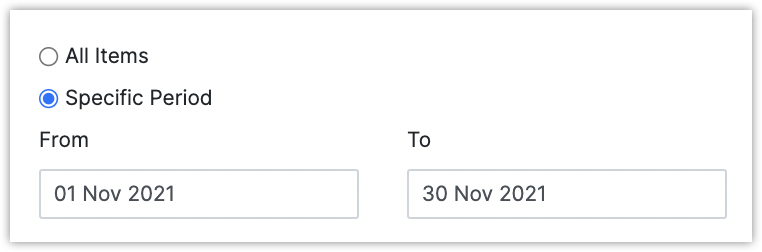 Select All Time or Specific Period.If Specific Period is chosen, enter the From and To date.