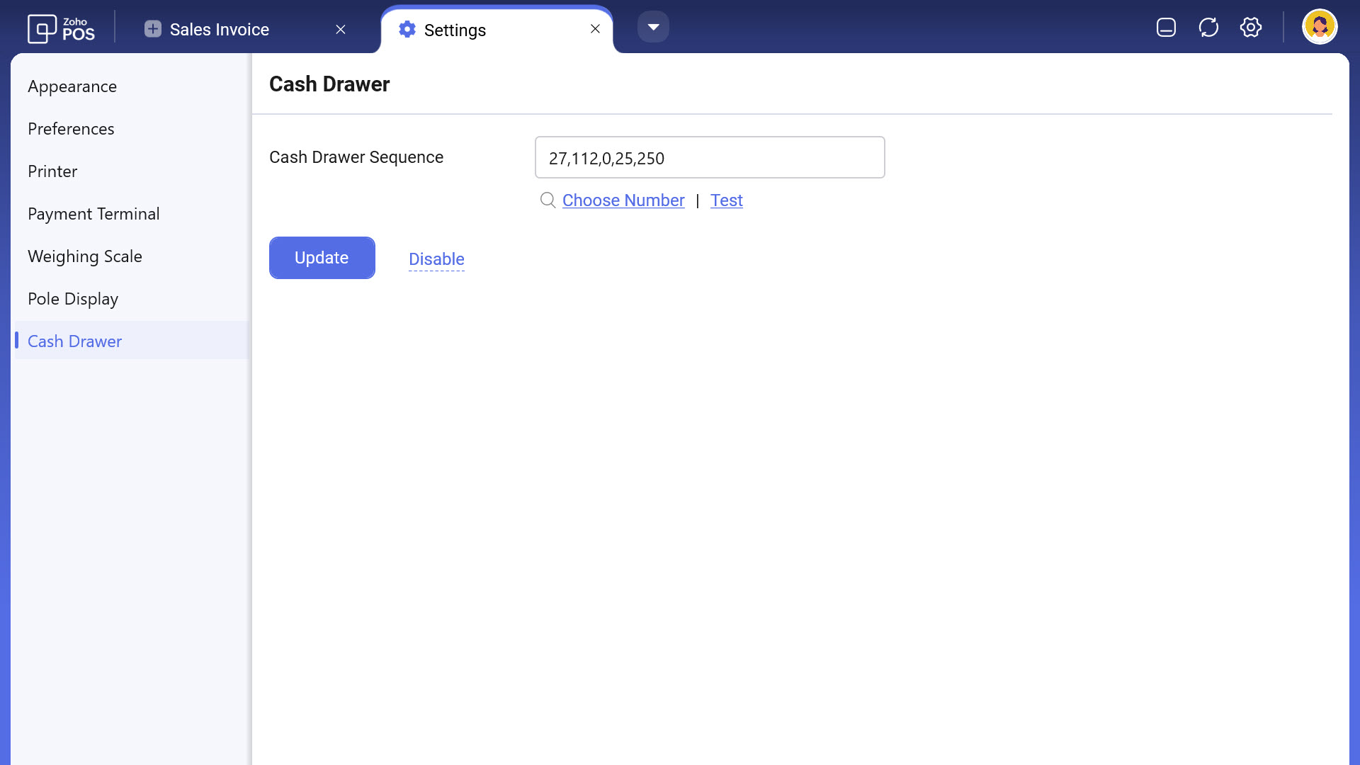 Cash drawers can be integrated with the POS software to automatically open them once the receipt is printed. This is possible with the help of control codes or sequence that is used for communication between the printer and the cash drawer. These control codes can be obtained by checking the printer manual or by contacting the manufacturer. You can also find the control codes or sequence number from the POS application by selecting Choose Number from the cash drawer configuration page.