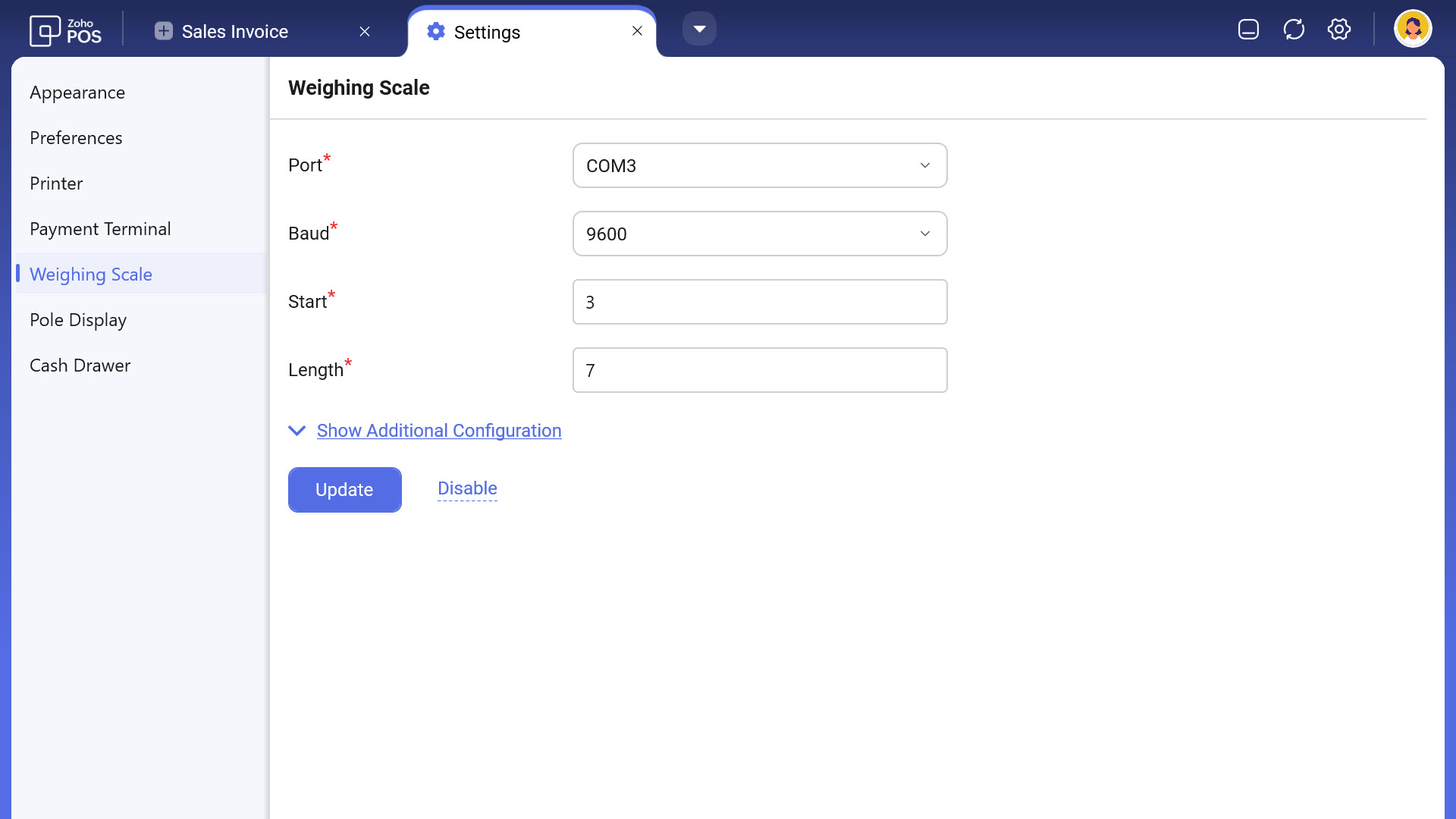 In order to set up the weighing scale with the Zoho POS app, the following has to be configured:
