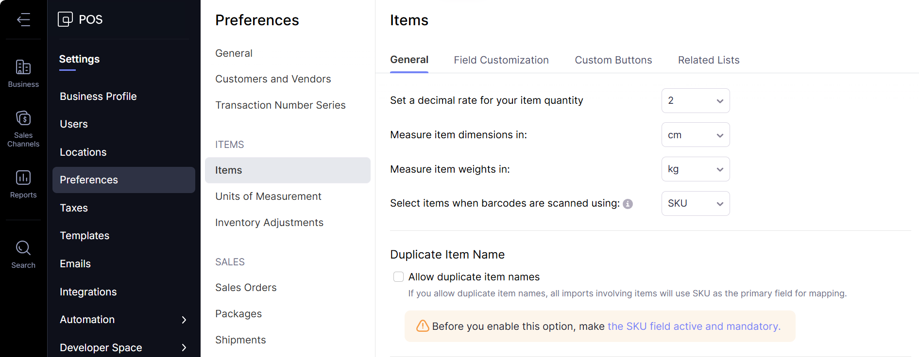If this option is enabled, then the SKU field will be used to identify an item and the corresponding field values during import. Hence, the SKU field should be active and mandatory.