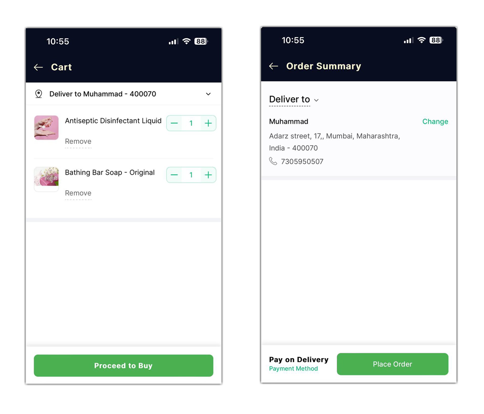 They can simply log in to your store with an email address and password. Once logged in, along with items and categories, they can also see your advertisement banners at the top of the homepage. From here, customers can find the price and stock of any item and add it to their cart. In the cart, they can review the order details with its pricing summary to ensure that the right items are added before placing the order. Finally, the order can be placed by selecting the fulfillment type. If there is any issue with the order, they can also get in touch with you using the email address or mobile number you gave them as your customer care details.