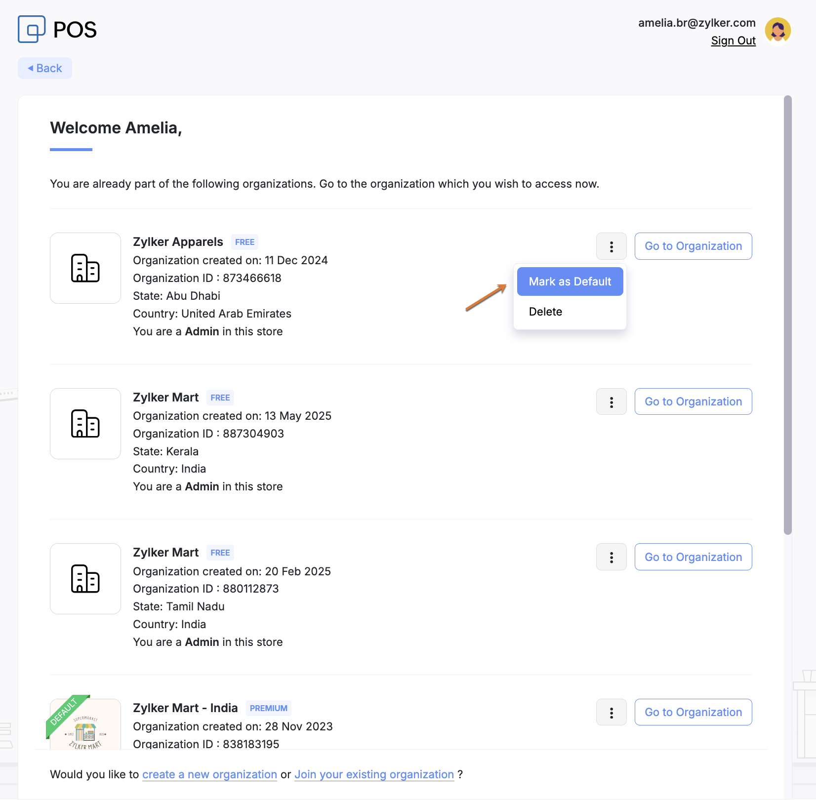 You can set the business you frequently visit as your default Business. When you set a business as default, you will be directed to it every time you log in with your credentials.