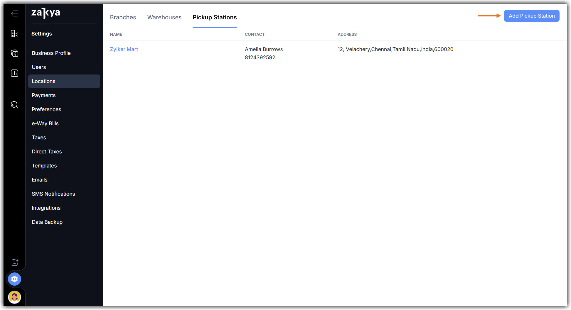 Add pickup stations by providing contact and address details specific to those locations so that your customers can easily navigate them.