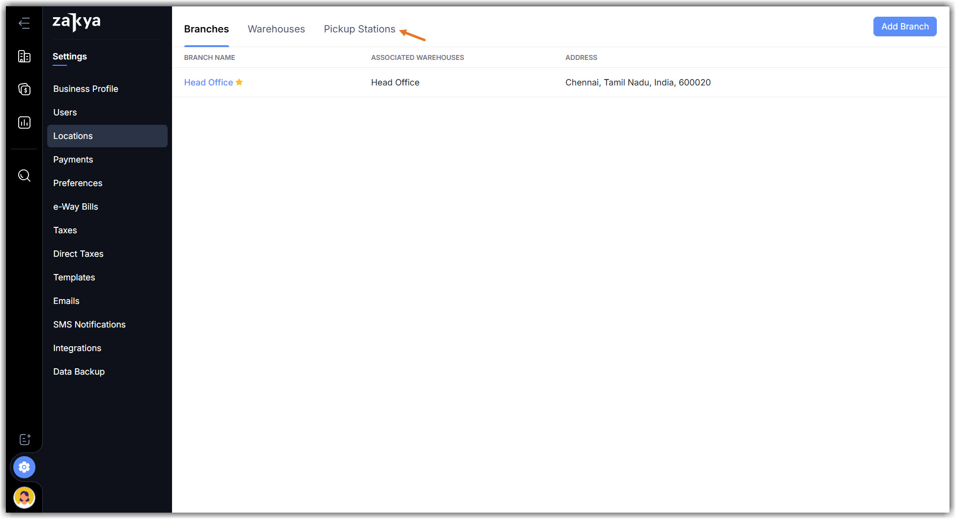 By default, your Head Office location will be added as a pickup station.