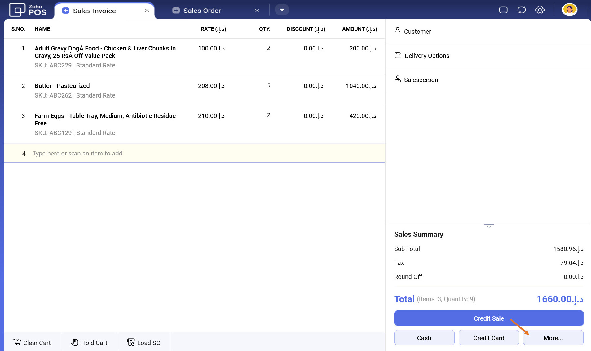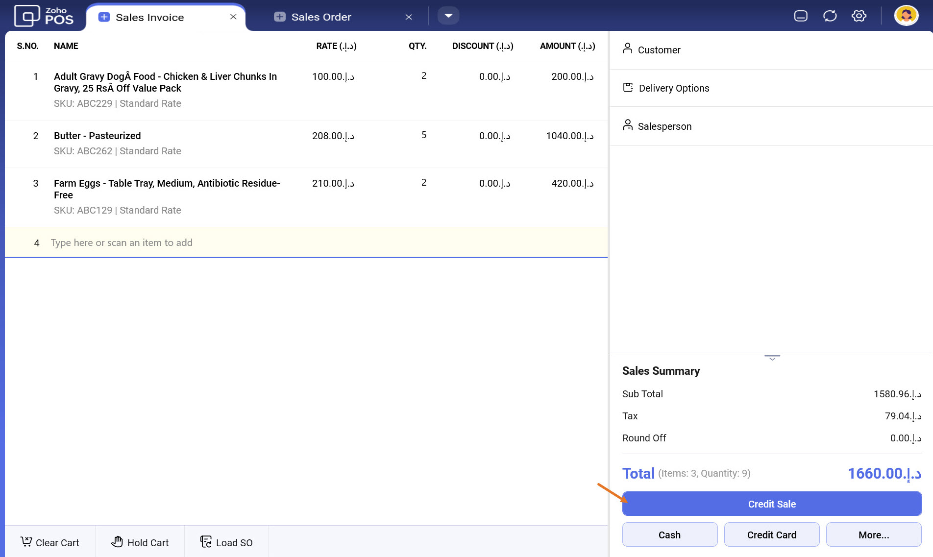 When a customer purchases various items from your store and chooses to complete the payment later, the sales order can be registered as a Credit Sale in Zoho POS POS Application.