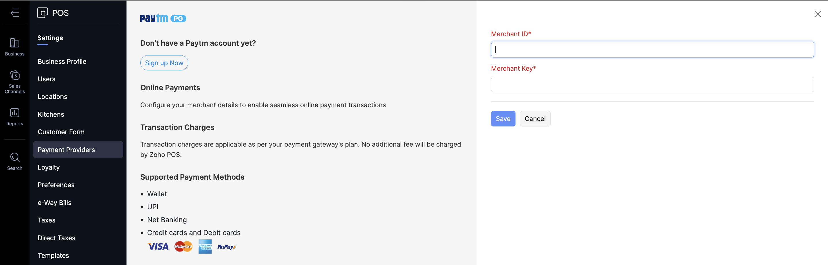 Configure Paytm by providing the following details: Merchant ID, Merchant Key.
