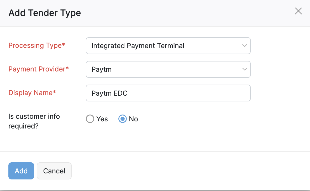 Click Add Tender Type to add a new tender type.