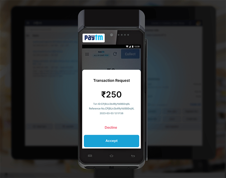 Click the corresponding tender type to initiate the payment through Paytm EDC device. This sends the request automatically.