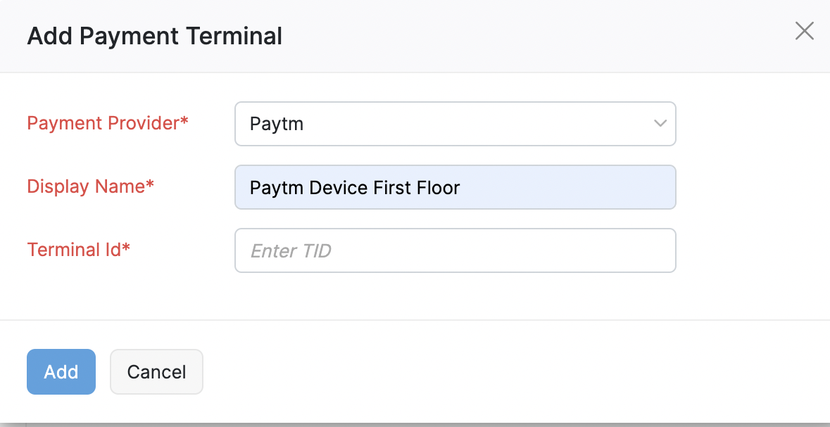 Click Add Payment Terminal to add a device.