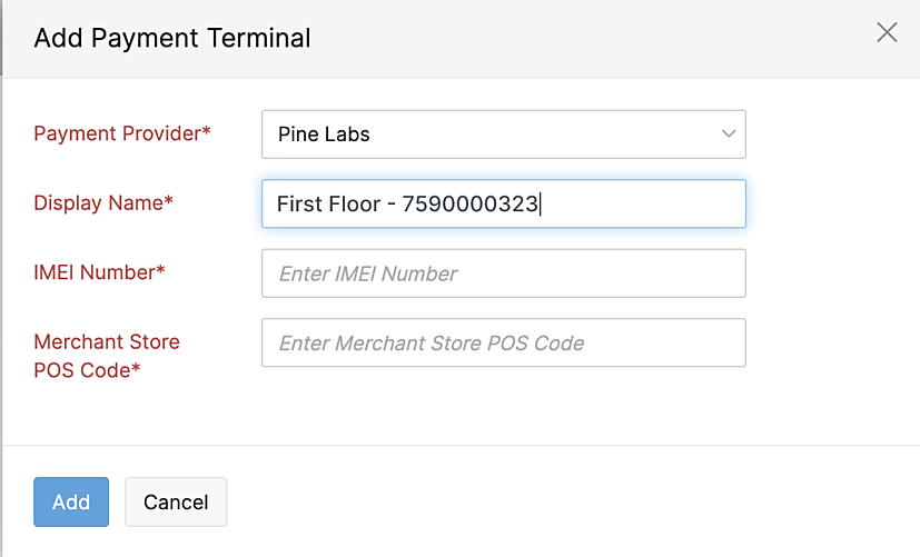 IMEI Number and Merchant Store POS Code can be obtained from Pine Labs sales or business team.