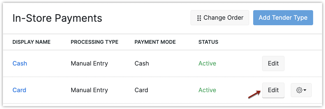 You can modify the payment method if required by clicking the Edit button next to the appropriate tender type.