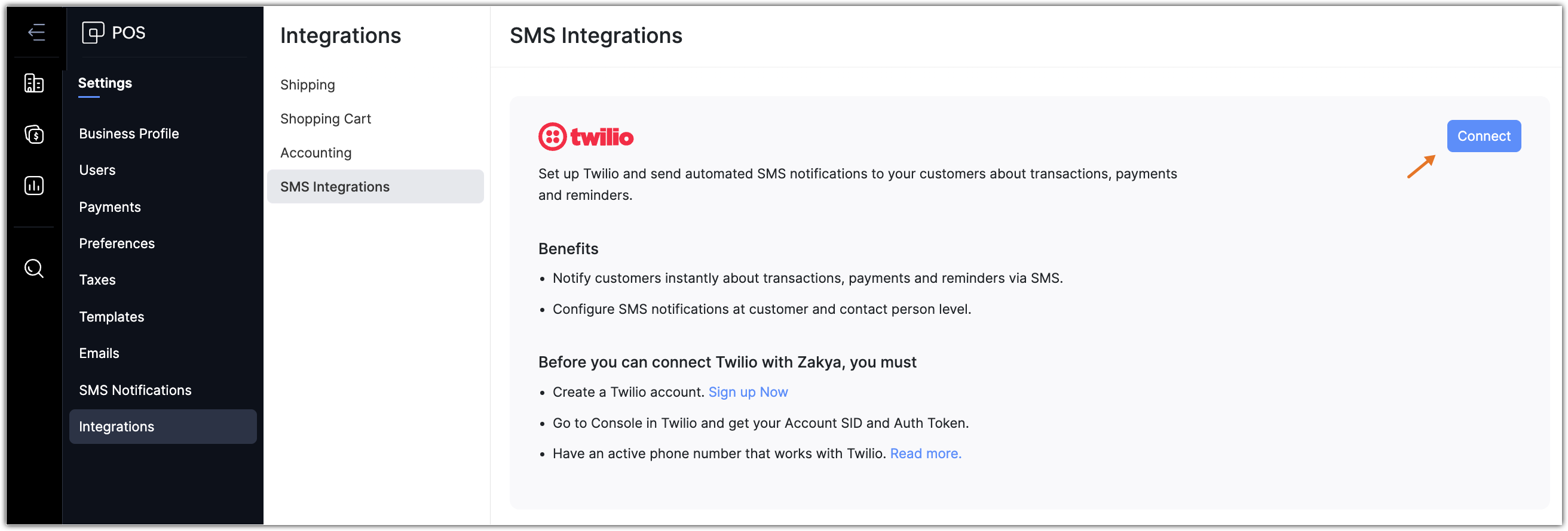 The SMS notifications can be sent to the customers directly from Zoho POS with the inbuilt integration. You can also customize the message that will be sent. However, if you already have a Twilio account, you can simply integrate it with Zoho POS and start sending SMS.