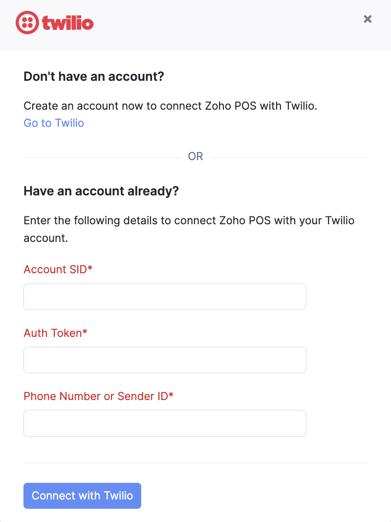 Enter the Account SID, Auth Token, Phone Number and click Connect with Twilio.