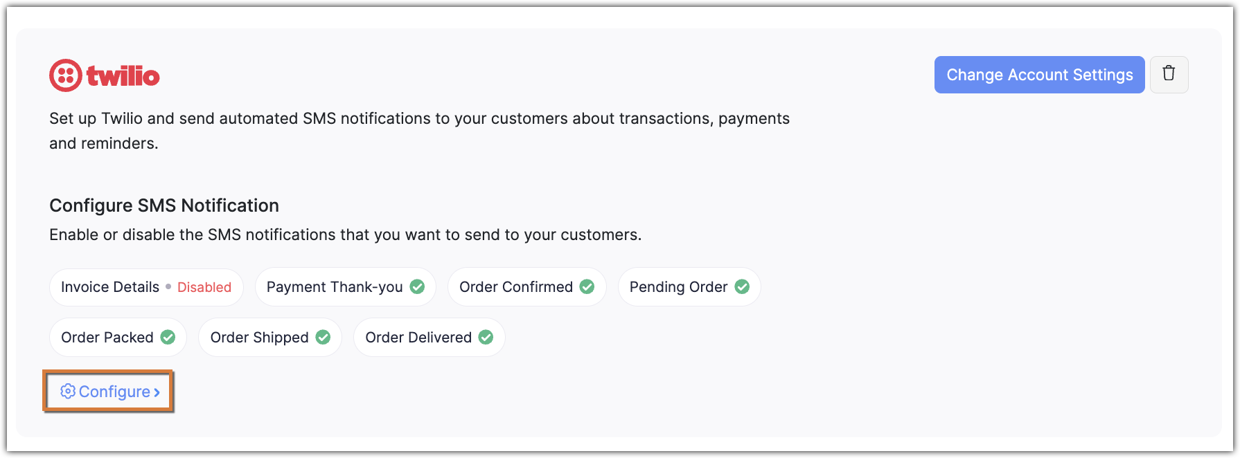 Click Configure in the Twilio section.