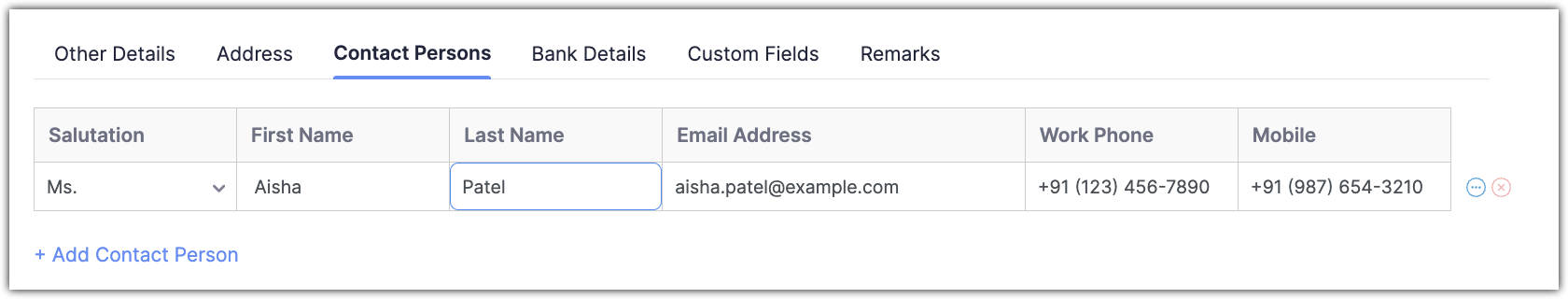 Click + Add Contact Person to add more contacts.