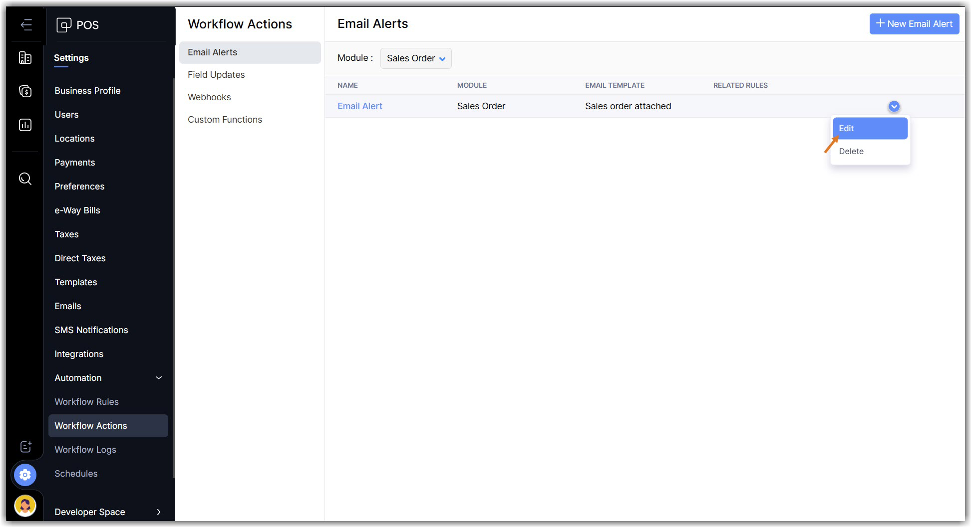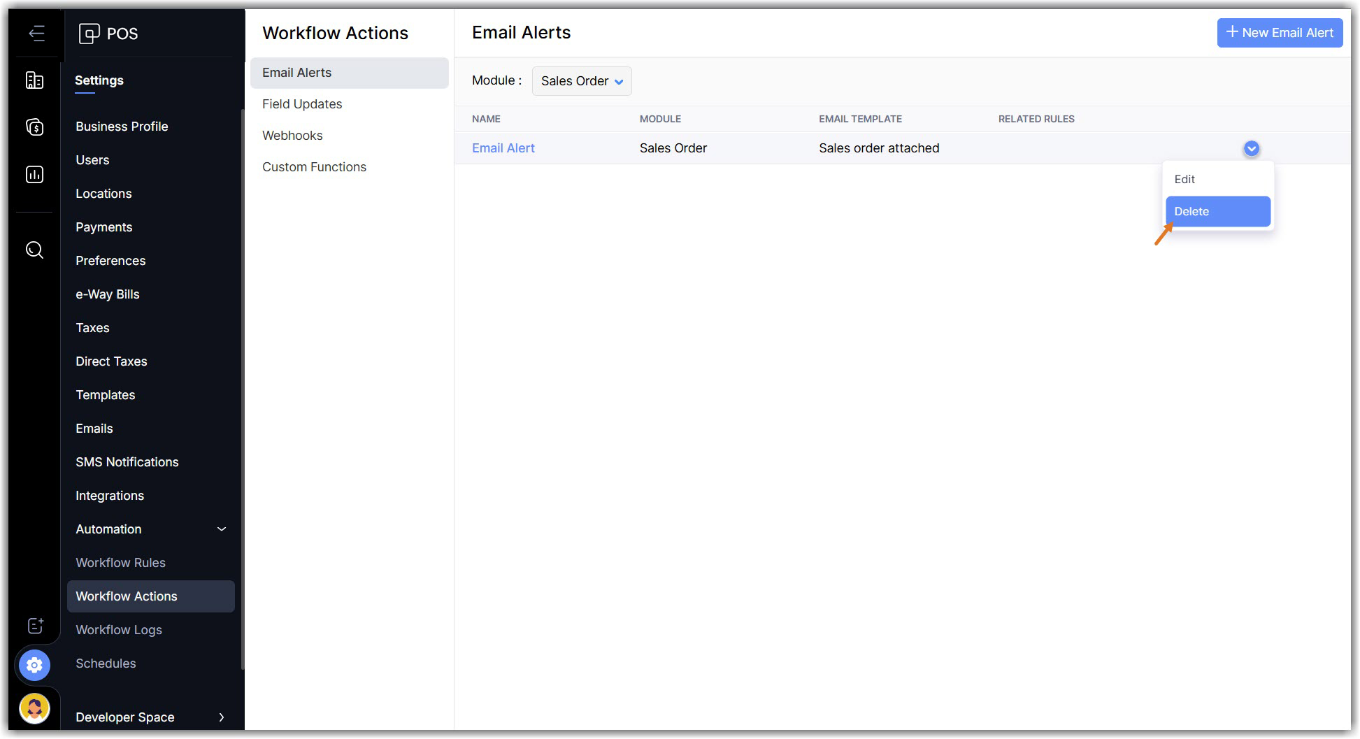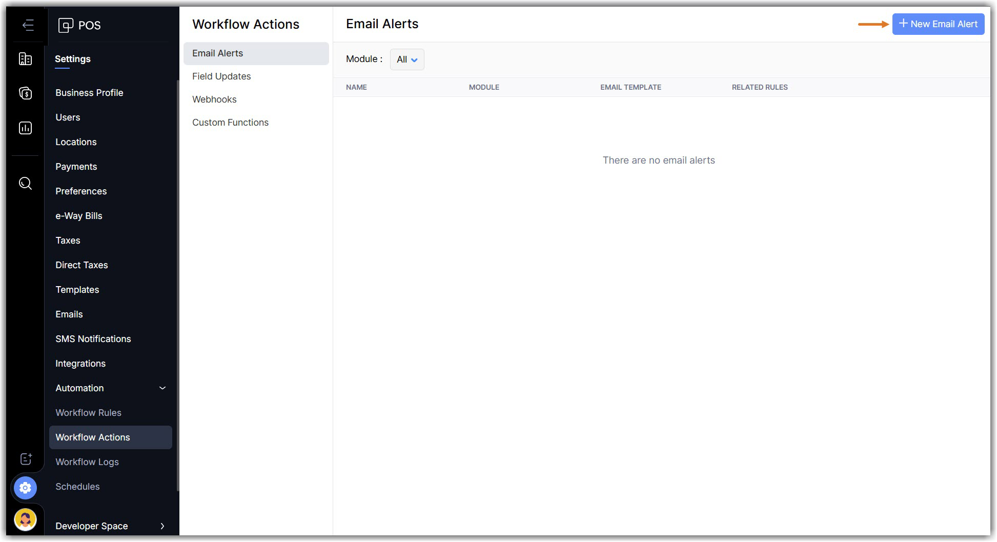 Navigate to Settings > Automations > Workflow Actions and click +New Email Alert.