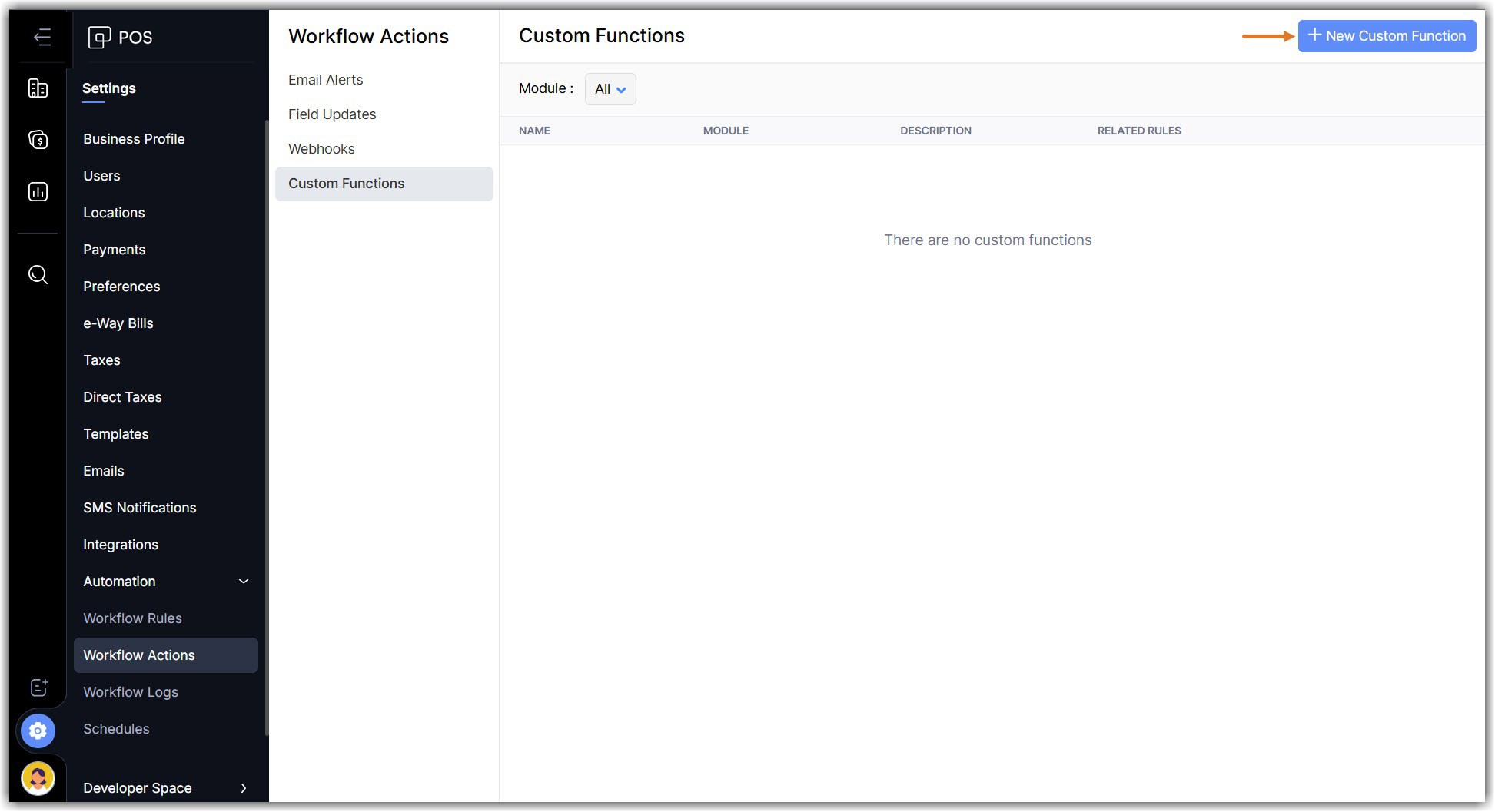 Navigate to Settings :> Automation > Workflow Actions and select Custom Functions.