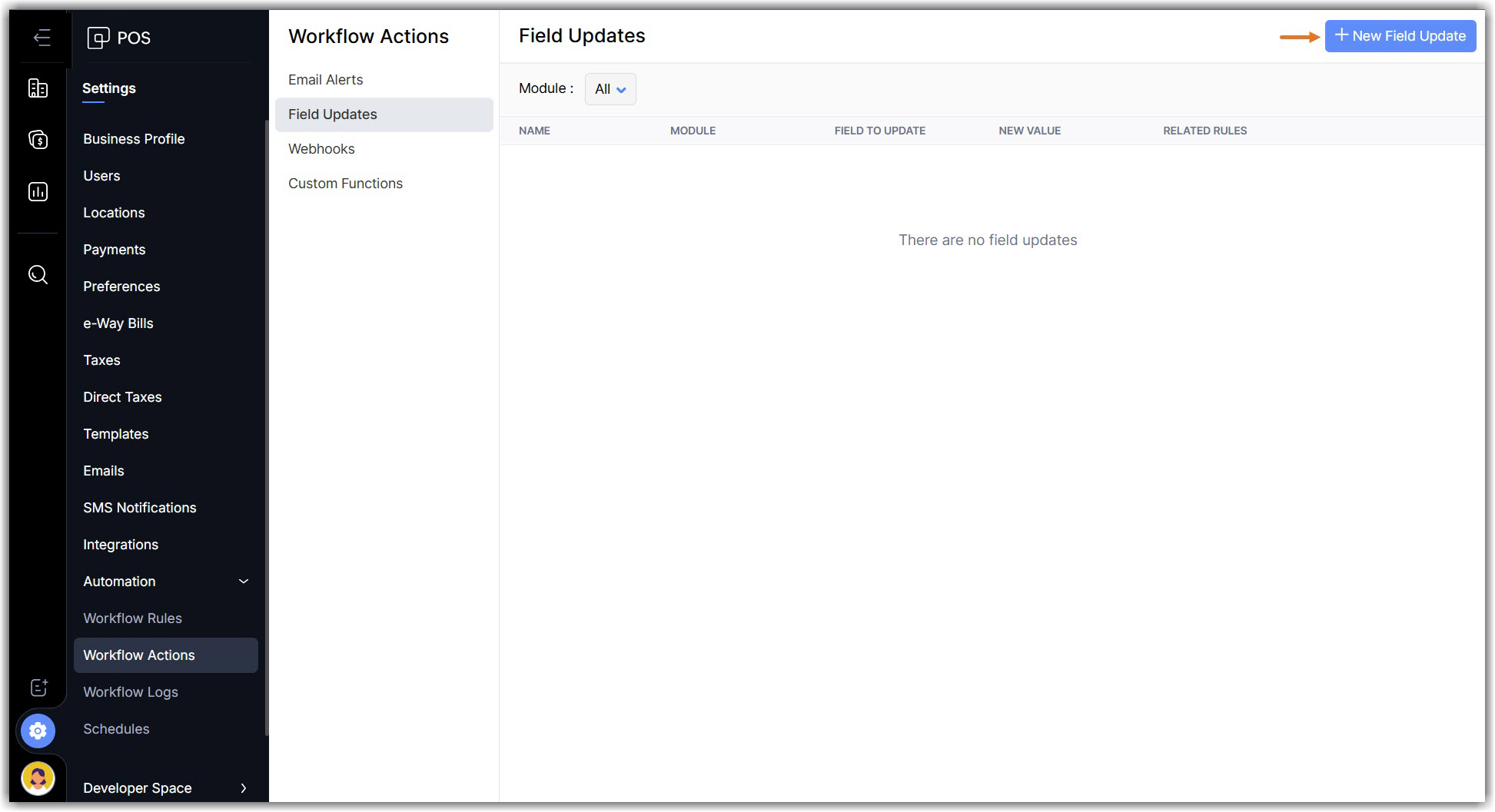 | Module | Select the module for which you wish to update any specific field. |