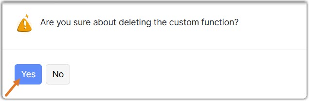 In the pop-up that appears, click Yes to delete the custom function.