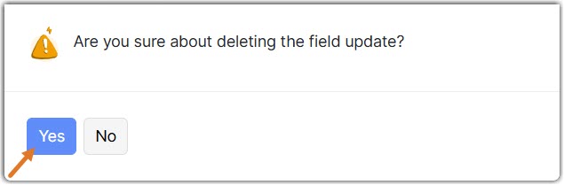Click Yes in the pop-up screen to delete the field update.
