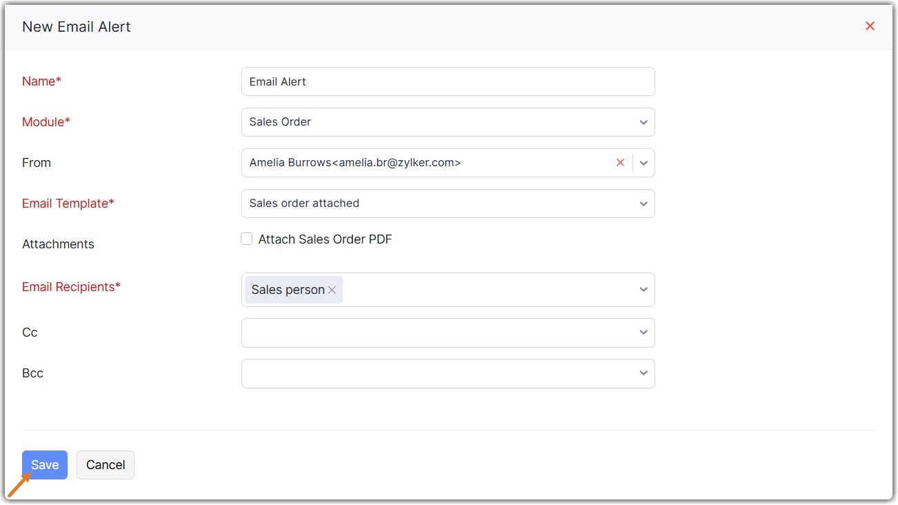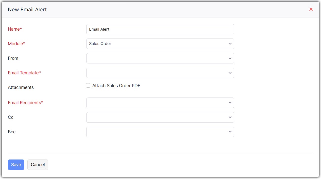 | Email Recipients | Pick contacts from the drop-down to whom you wish to send the email alerts. |