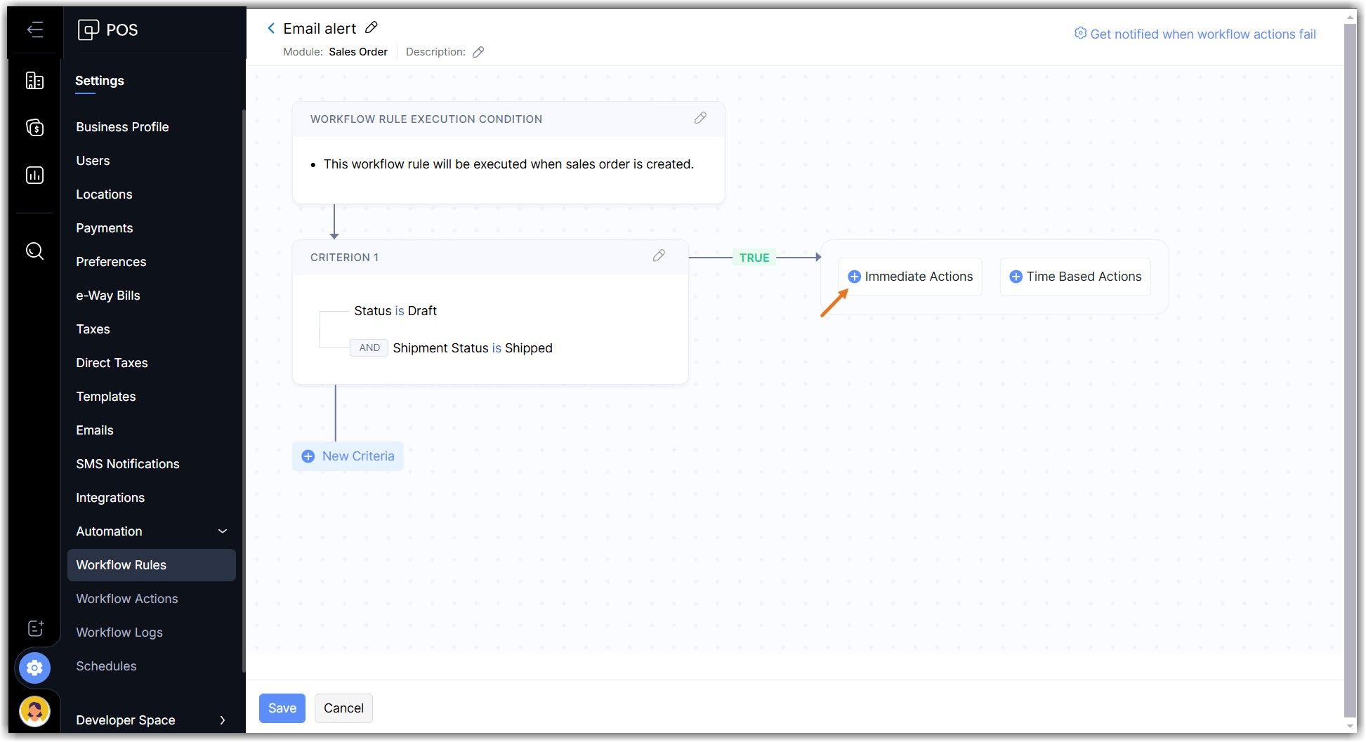 + Immediate Actions: Triggers actions immediately when the criteria are met.
