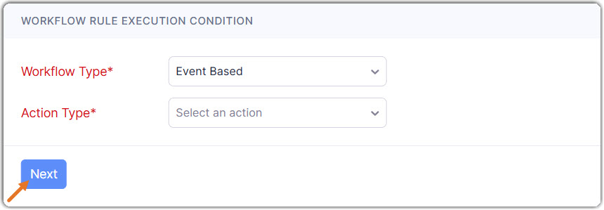 | Workflow Type | When does this action need to be executed? Should it be triggered only based on an event, or when an event occurs at a specific time? |