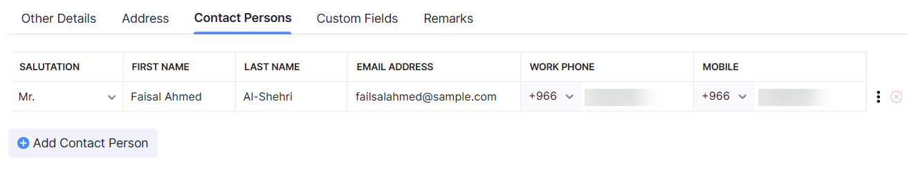 Click + Add Contact Person to add more contacts.