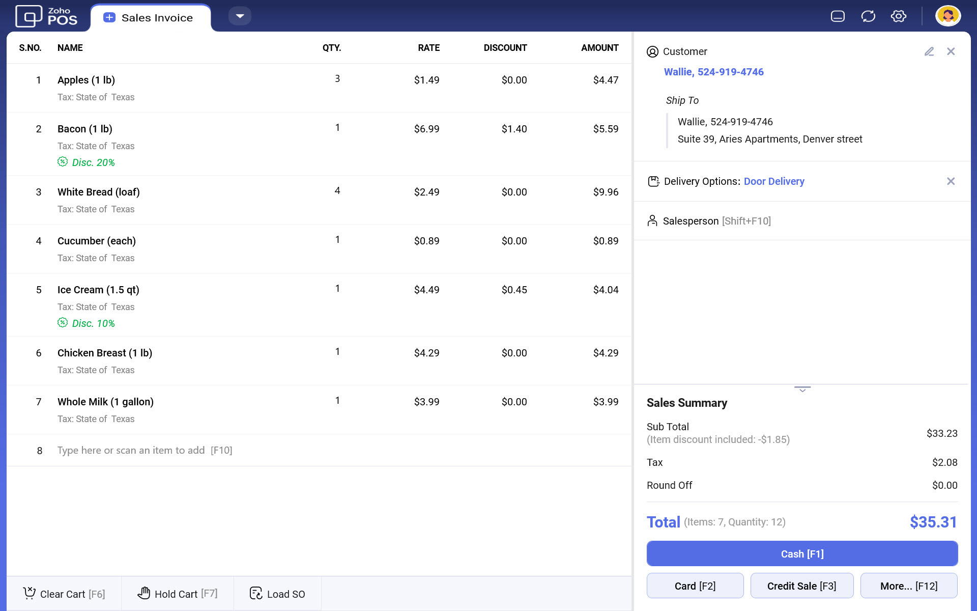 The supermarket is situated in Los Angeles, where customers can pay a visit and purchase the items that they need. The checkout process by the cashier is managed with the help of the Zoho POS billing applications. A bill can be created, and the information about the customer can also be recorded.