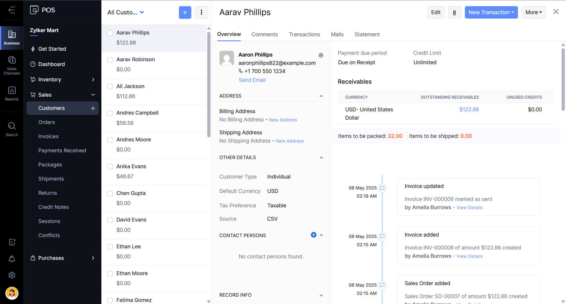 Zoho Books, on the other hand, is an online accounting software and integrating it with Zoho POS will help manage your finances, keep you Sales Tax compliant and lets you automate various business workflows.