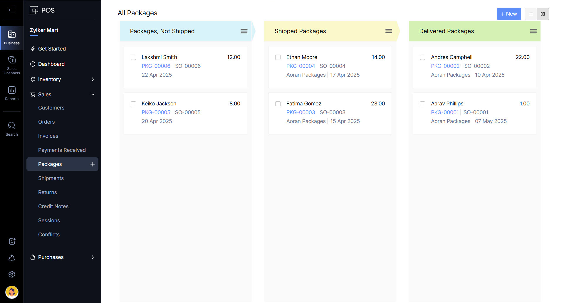 Zoho POS lets you create packages and ship them either manually or via carrier. You can also track the shipment using Aftership, manage returns and record refunds. With the help of SMS Notifications powered by Zoho POS, the customers can be informed about the status of their shipment. All these ensure that every step in the order fulfillment process is executed efficiently with happy customers.