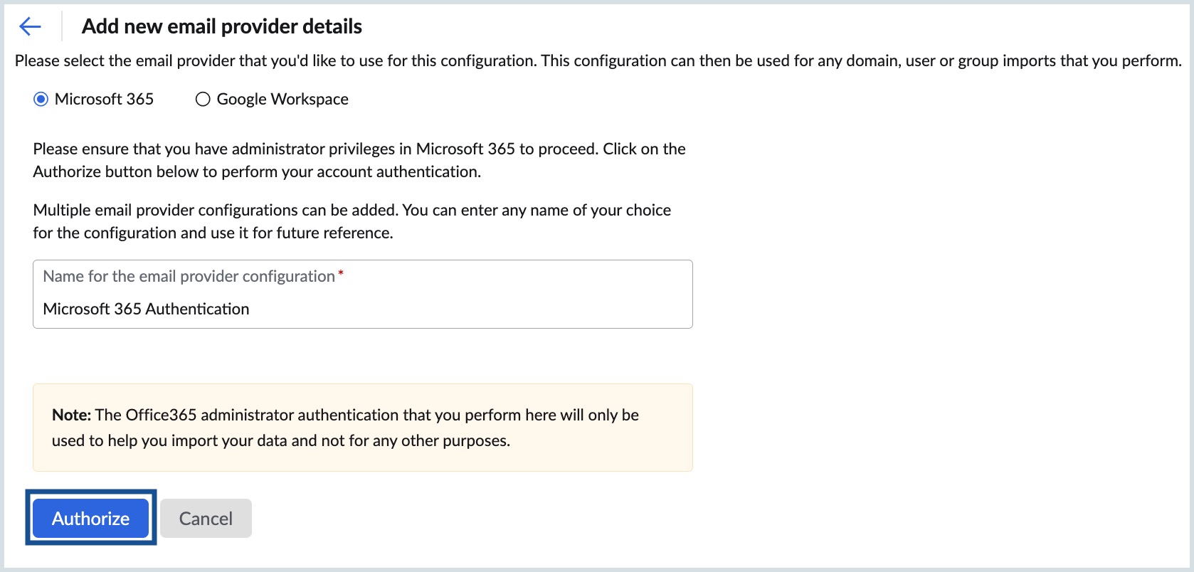 You have now successfully configured your Microsoft 365 account in Zoho eProtect to migrate emails. Navigate to the Configure Migration section of our help page to proceed with Data Migration.