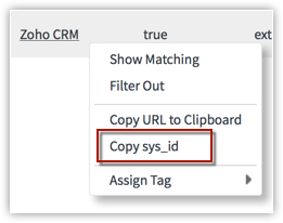 - Haga clic con el botón secundario del mouse en su proveedor de identidad correspondiente en la página de inicio de Proveedores de identidad y luego haga clic en Copiar sys_id.