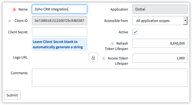 Iniciar sesión en ServiceNow con credenciales de Zoho CRM