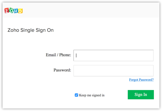 - Copie la URL de inicio y ábrala en una nueva ventana. Será redireccionado a la página Inicio de sesión único de Zoho.