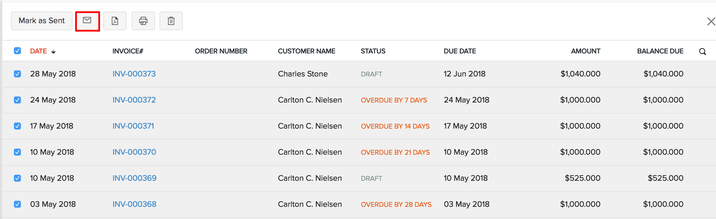 on the top to send all the invoices at once.