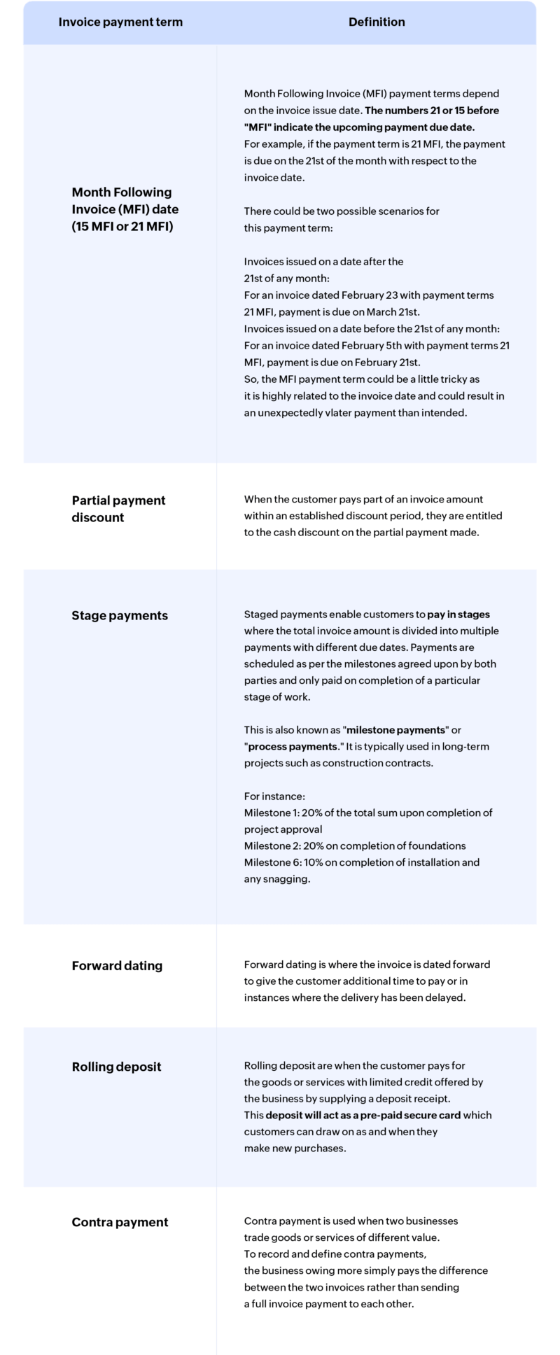 Defining your payment terms clearly and making them a standard part of your invoicing process eliminates misunderstandings and make it easier for customers to align with your payment expectations.