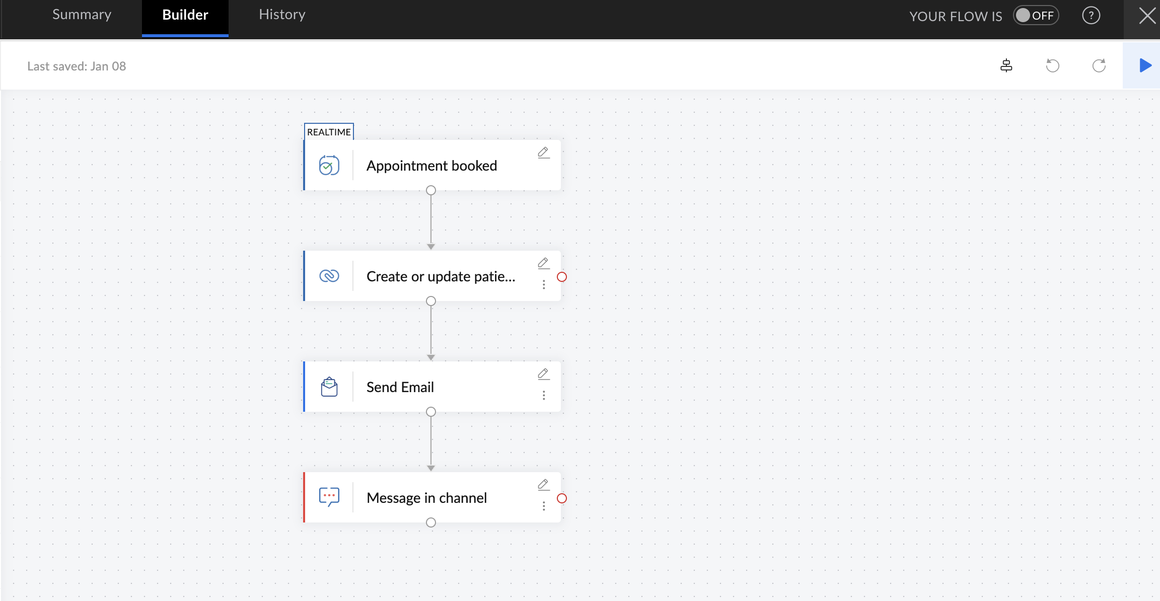 Below is a simple automated workflow that manages a patient appointment end to end, without any manual intervention.
