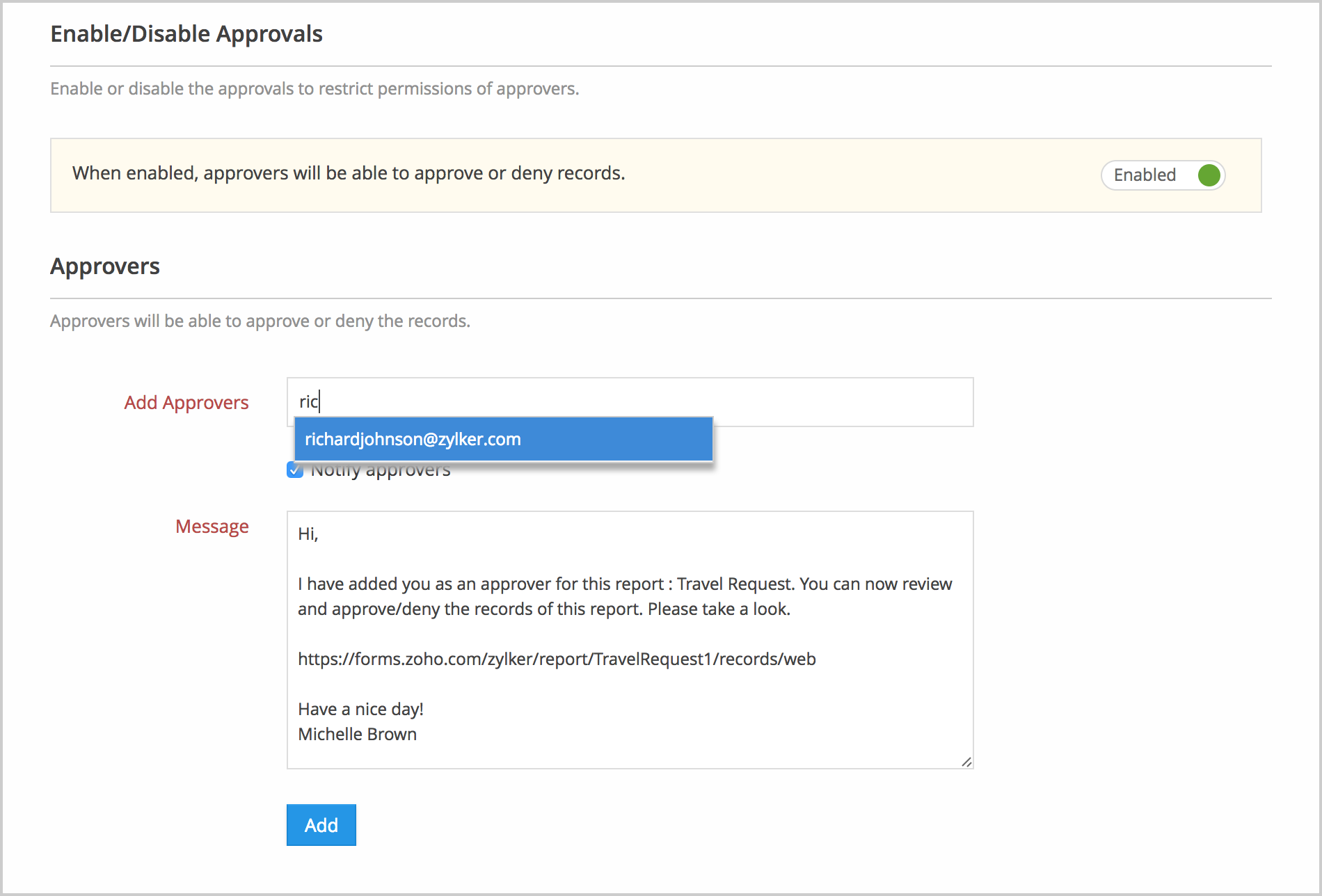Add Approvers