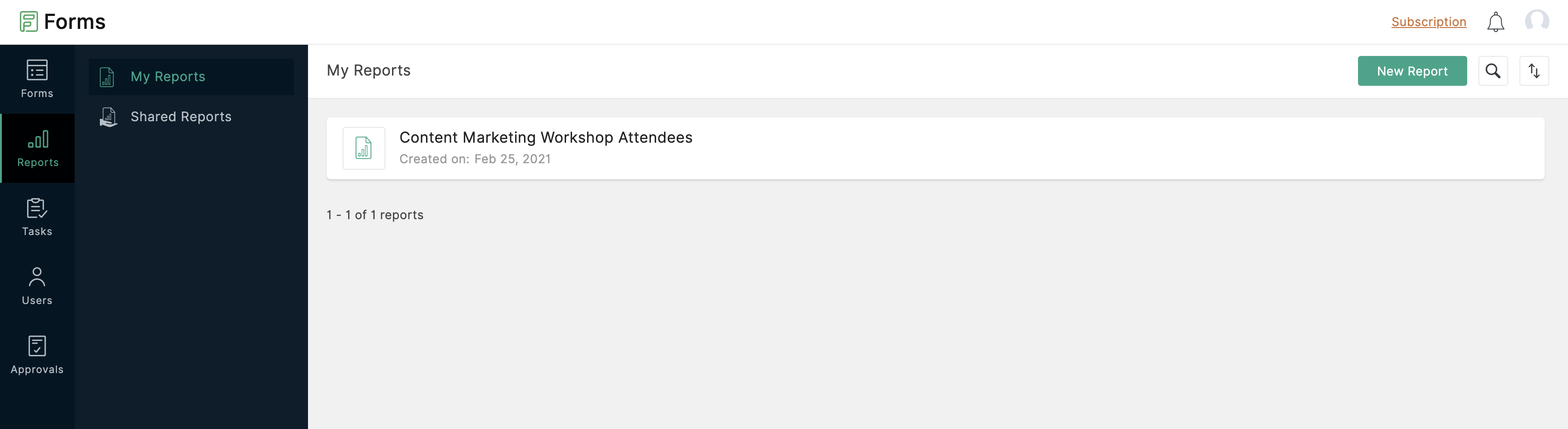 - To create a new report, click on the New Report button at the top-right corner of the page.
