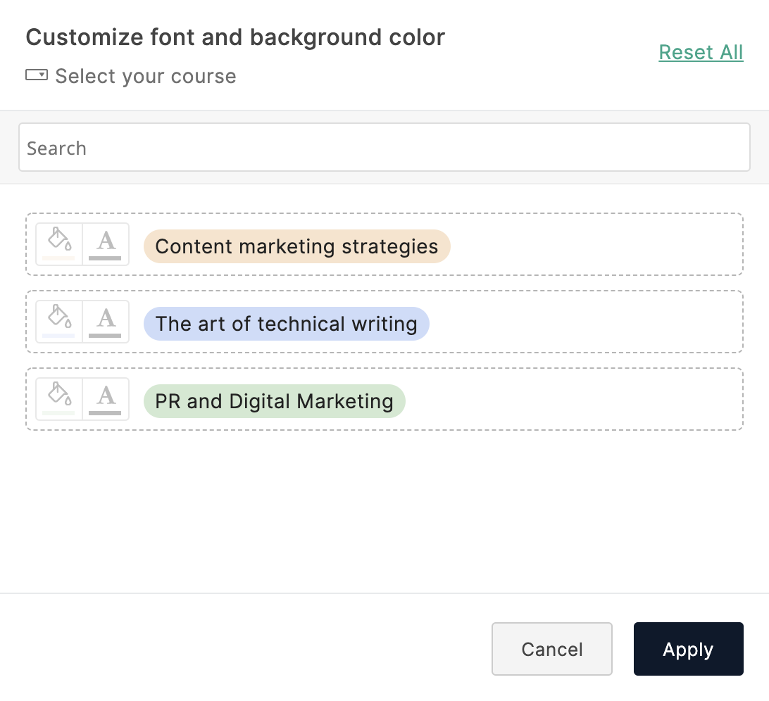 ii. In the pop-up, set font and background colors for all the choices you've listed under a field.