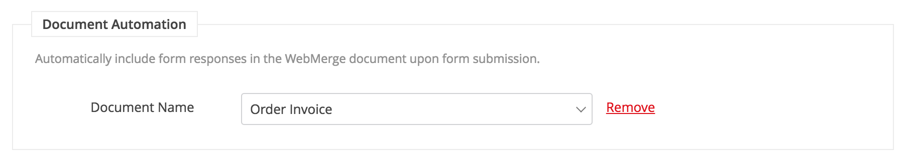 You can choose to automatically merge all the mapped field responses into your WebMerge document, every time the form submission is made. For this, under the Document Automation select the required document from the dropdown.