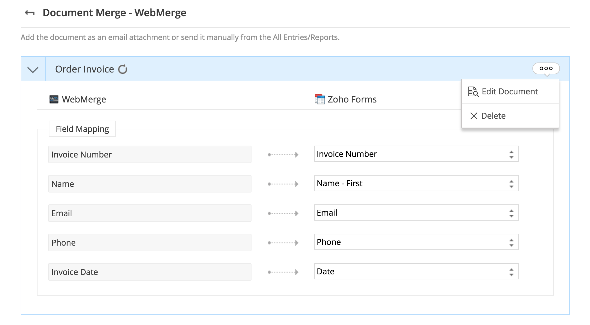 Note: If you've configured email notifications in WebMerge as well, both the Zoho Forms' email and WebMerge email will be sent.