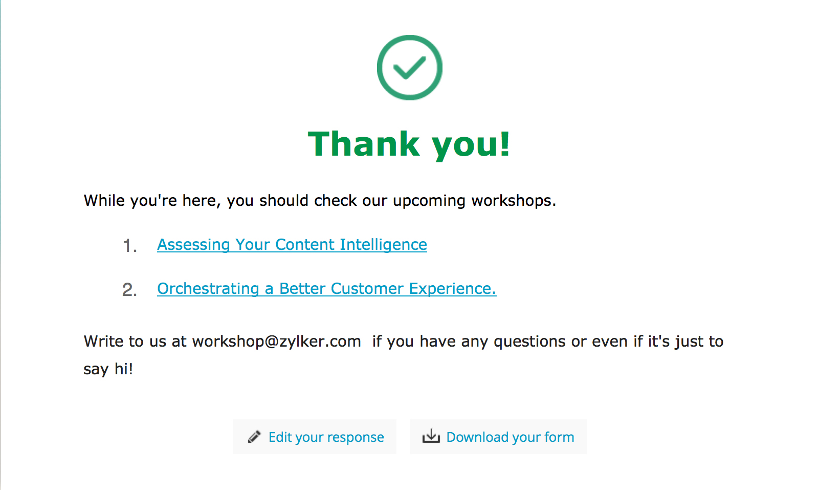 Note: The Rich Text option is available only in our paid plans. Also, if you wish to remove Zoho Forms' promotions from the Thank You page, you will have to subscribe to any of our paid plans.
